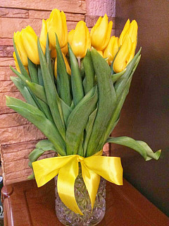 Букет из одиннадцати желтых тюльпанов отлично подойдет как приятный жест, презент или извинение. Желтый цвет олицетворяет яркость, праздничность, солнце и счастье. Такие цветы дарятся любимым женщинам, друзьям и приятелям, которых хочется немножко порадовать, поднять настроение. Согласно языку цветов, желтый тюльпан – это лучший способ выразить восхищение.